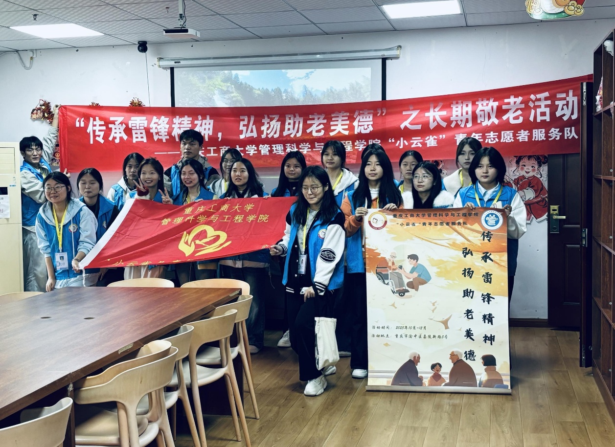 为传承敬老爱老传统美德,用青春力量温暖老年群体,重庆工商大学管理科学与工程学院“小云雀”青年志愿者服务队于2025年10月25日走进重庆市渝中区嘉陵新路5号惠和养老服务中心,开展以“传承雷锋精神,弘扬助老美德”为主题的志愿服务活动,与老人们共度温馨时光。