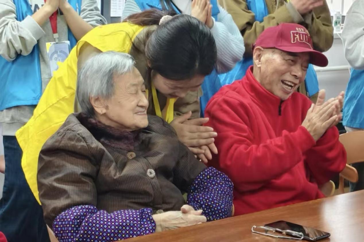 互动游戏环节更是将活动推向高潮。“筷子接力”游戏里,志愿者耐心协助老人传递筷子,偶尔掉落的筷子伴随着老人即兴的小表演,满是温馨;在“大风吹”游戏中,“戴眼镜的请摸摸头发”“穿红衣的请摸摸膝盖”等富有趣味的指令极大地激发了老人们的参与热情,获胜者在听到祝福语时,喜悦之情更是溢于言表。“拍手抢杯子”游戏的趣味互动,让老人们在欢笑中展现着活力。现场欢声笑语此起彼伏,老人们的幸福感和归属感在这些互动中得以不断提升。