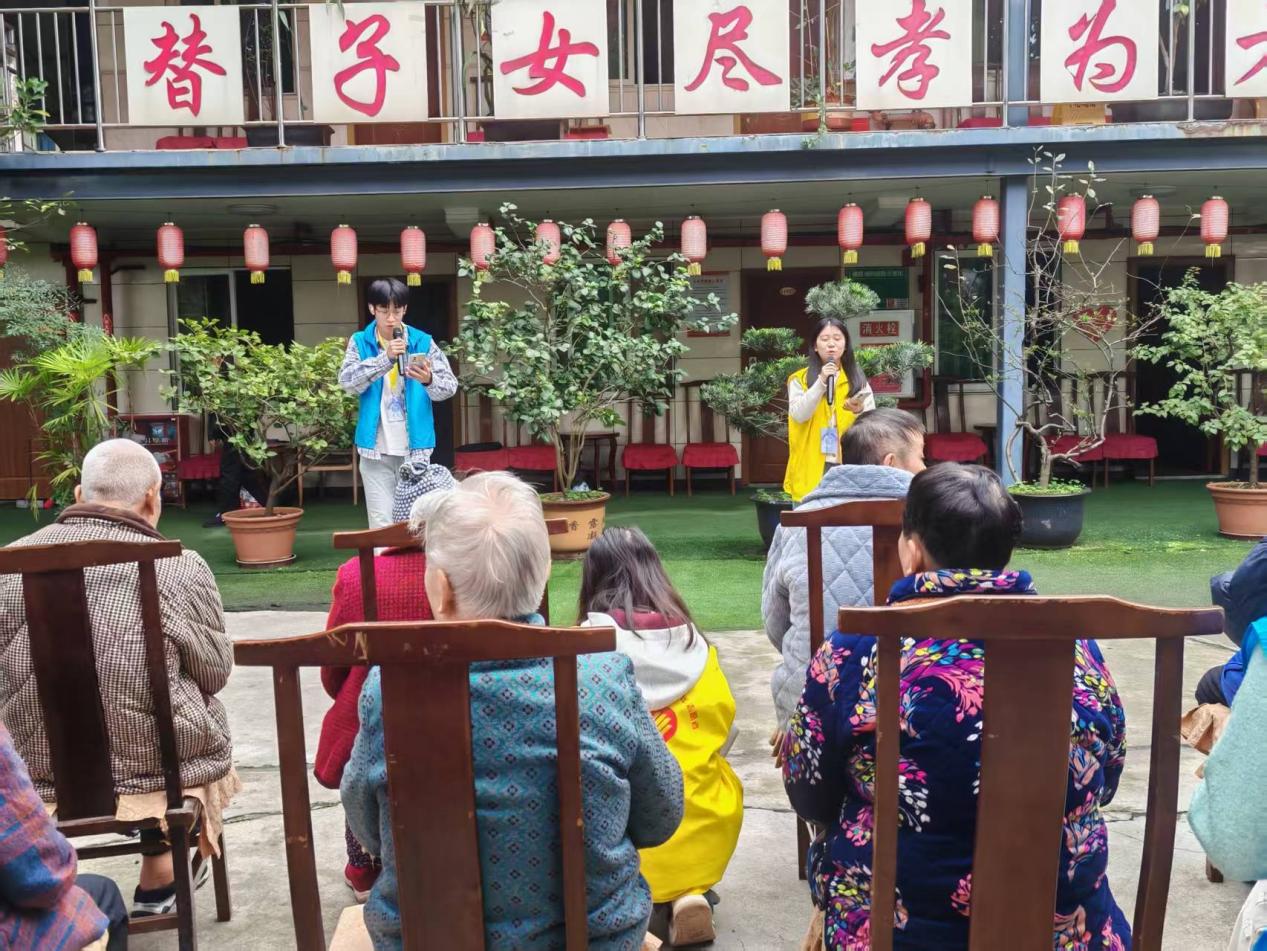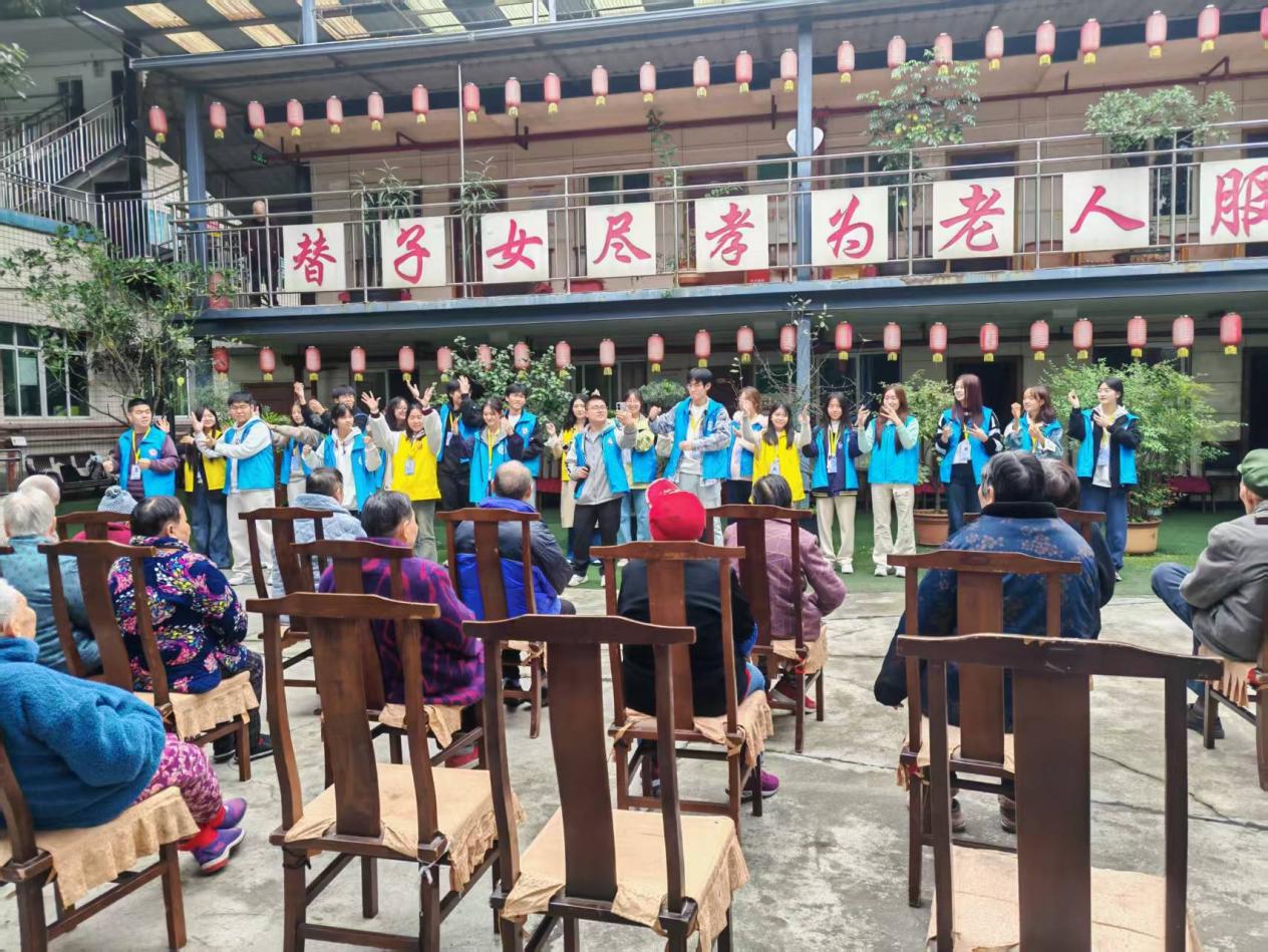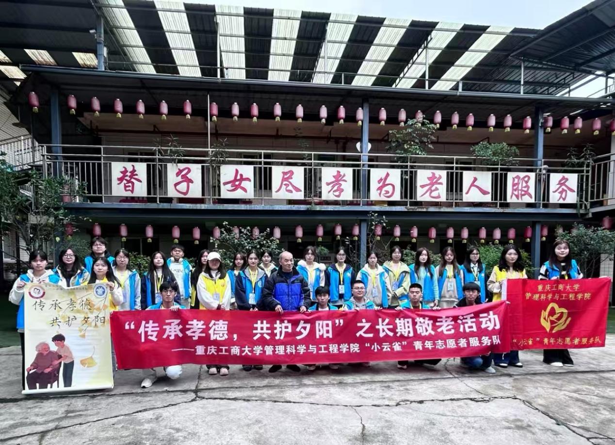 为弘扬中华民族尊老爱老的传统美德,给养老院的老人们带去温暖与关怀,2025年11月15日下午,重庆工商大学管理科学与工程学院“小云雀”青年志愿服务队前往重庆市南岸区南山街道泉山村麻柳湾33号福源养老院,成功举办“传承美德,共护夕阳”长期敬老活动。