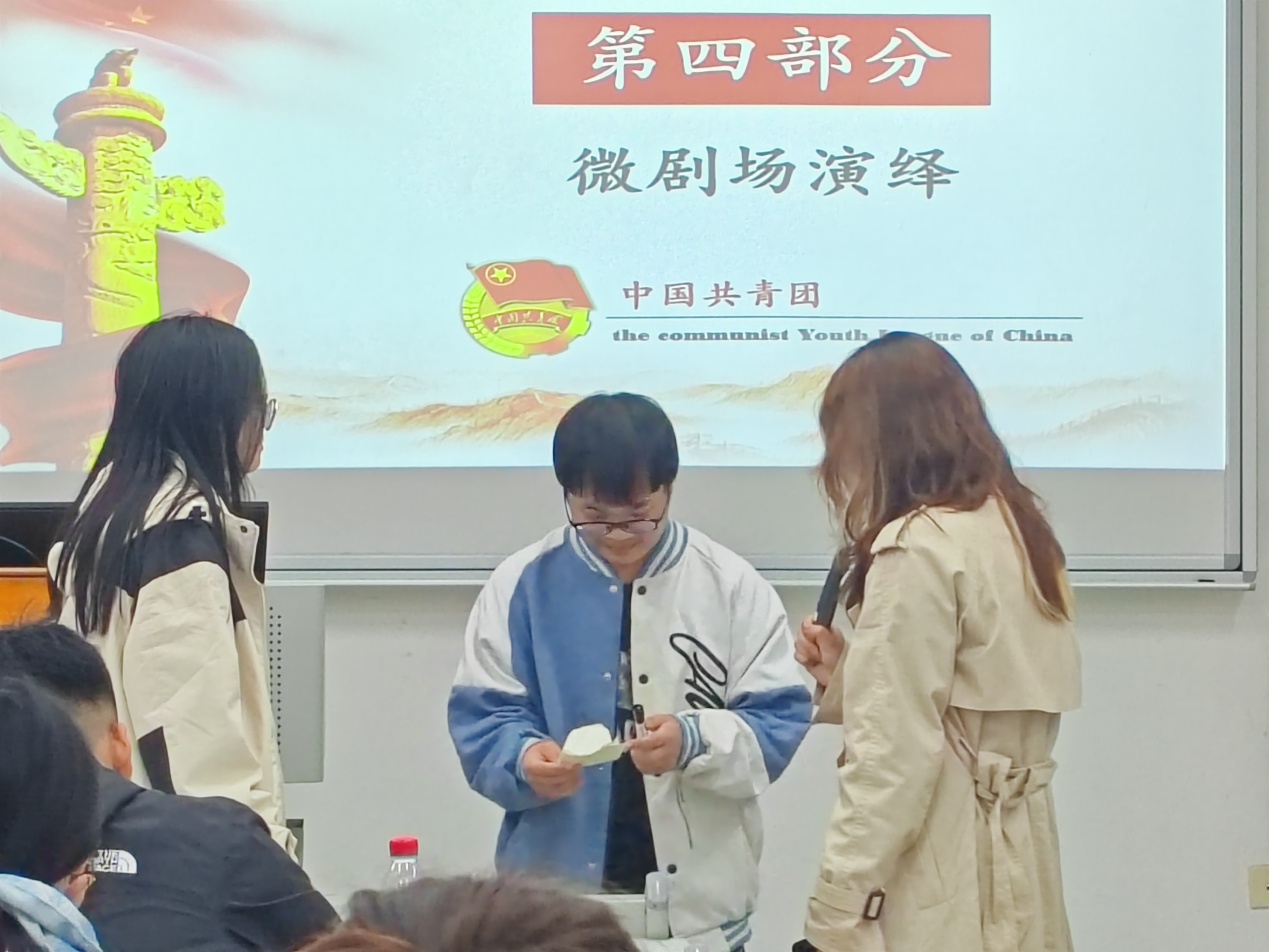 在微剧场演绎环节,由主持人抽取四位同学后为我们演绎了江姐狱中传信的场景,同学们利用现有道具进行即兴演绎,沉浸式感受角色精神,引导大学生重温革命历史,感悟精神伟力,深刻领悟红岩精神的核心内涵,筑牢听党话、跟党走的信仰之基。