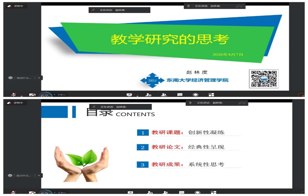 为进一步提升学院教学改革项目申报质量,破解教师在成果凝练、申报路径探索中思路不清、技巧不足的难题,2026年4月7日,我院专项组织开展在线教学改革项目申报与成果凝练专题培训。本次培训特邀东南大学首席教授,博士生导师,国务院政府特殊津贴专家赵林度教授亲临授课,学院领导班子及部分教师参加培训,共同系统学习教改申报要领,深度凝练教学改革成果。
