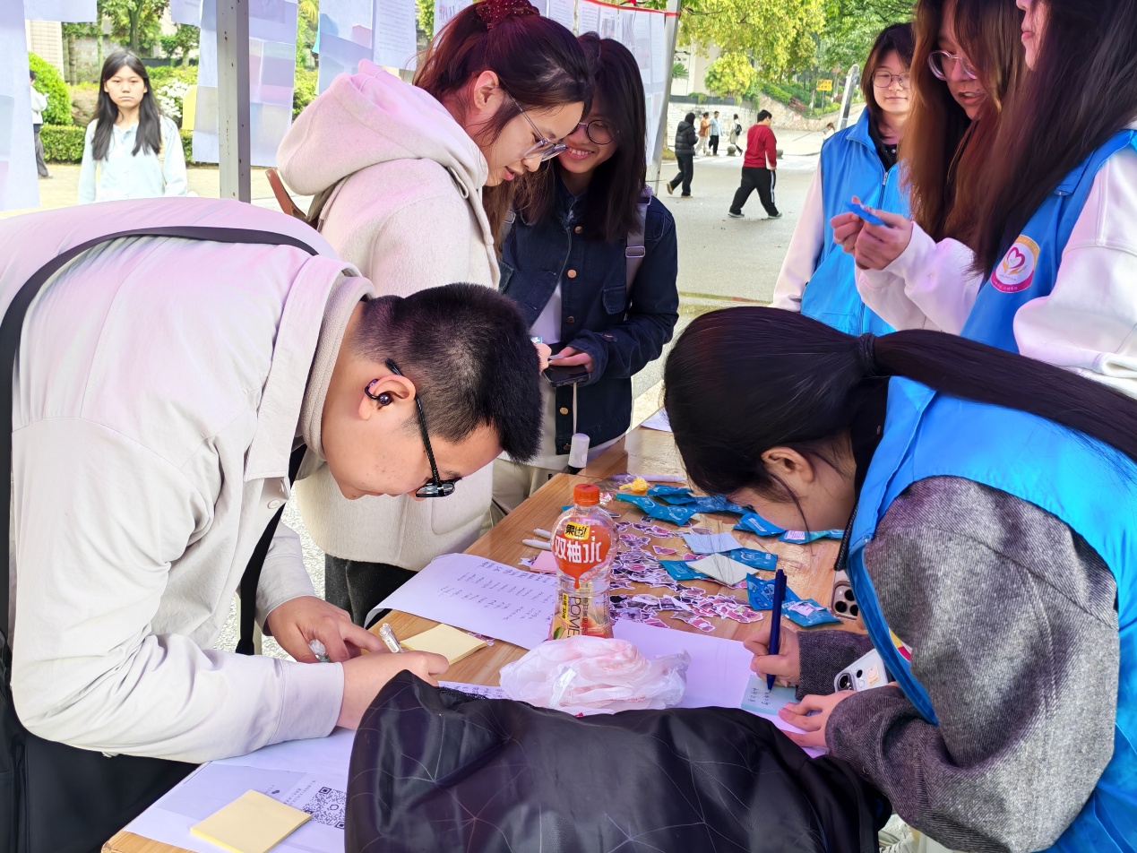 展览现场,一排展板在七教门前展开,吸引了往来师生的目光。同学们在展板前驻足,阅读身边同龄人的真实事迹。现场设置的留言墙上,贴满了各色便利贴,上面写着“感动”“加油”“向你学习”等简短而真挚的话语。这些即时的反馈与展板上的故事相互呼应,形成了一种温暖、积极的互动氛围,让抽象的精神在具体的人和事中变得可感可知。
