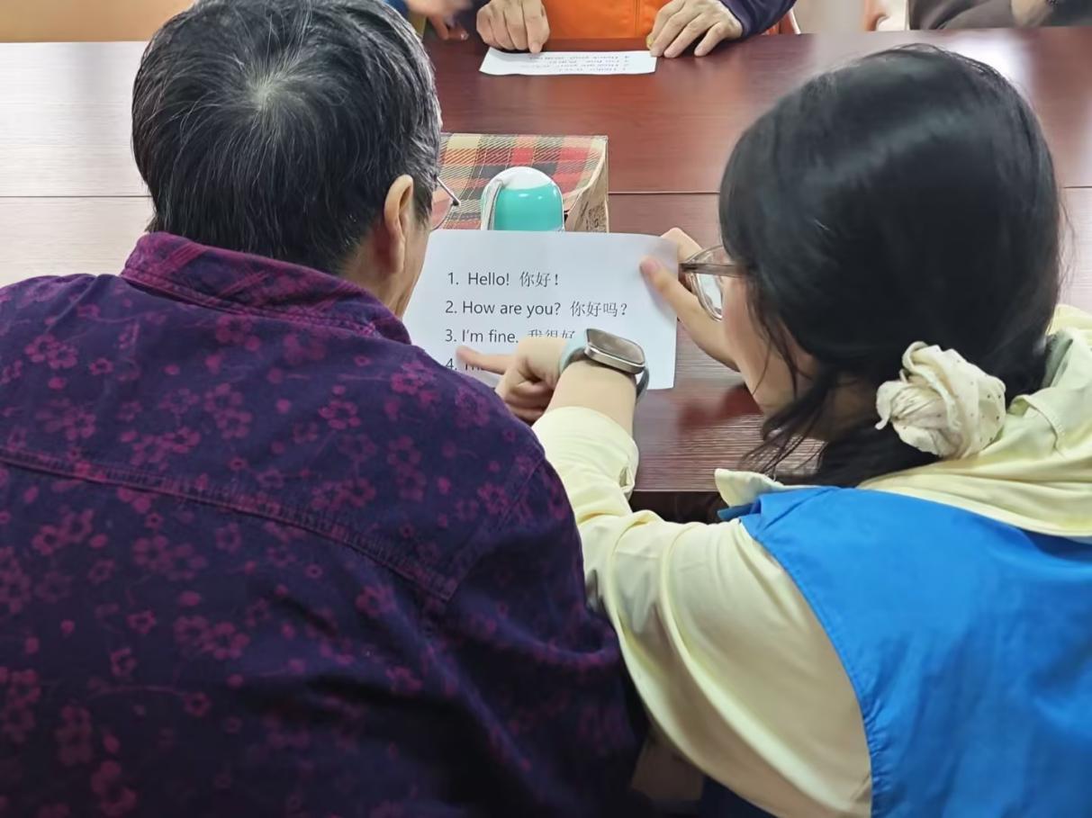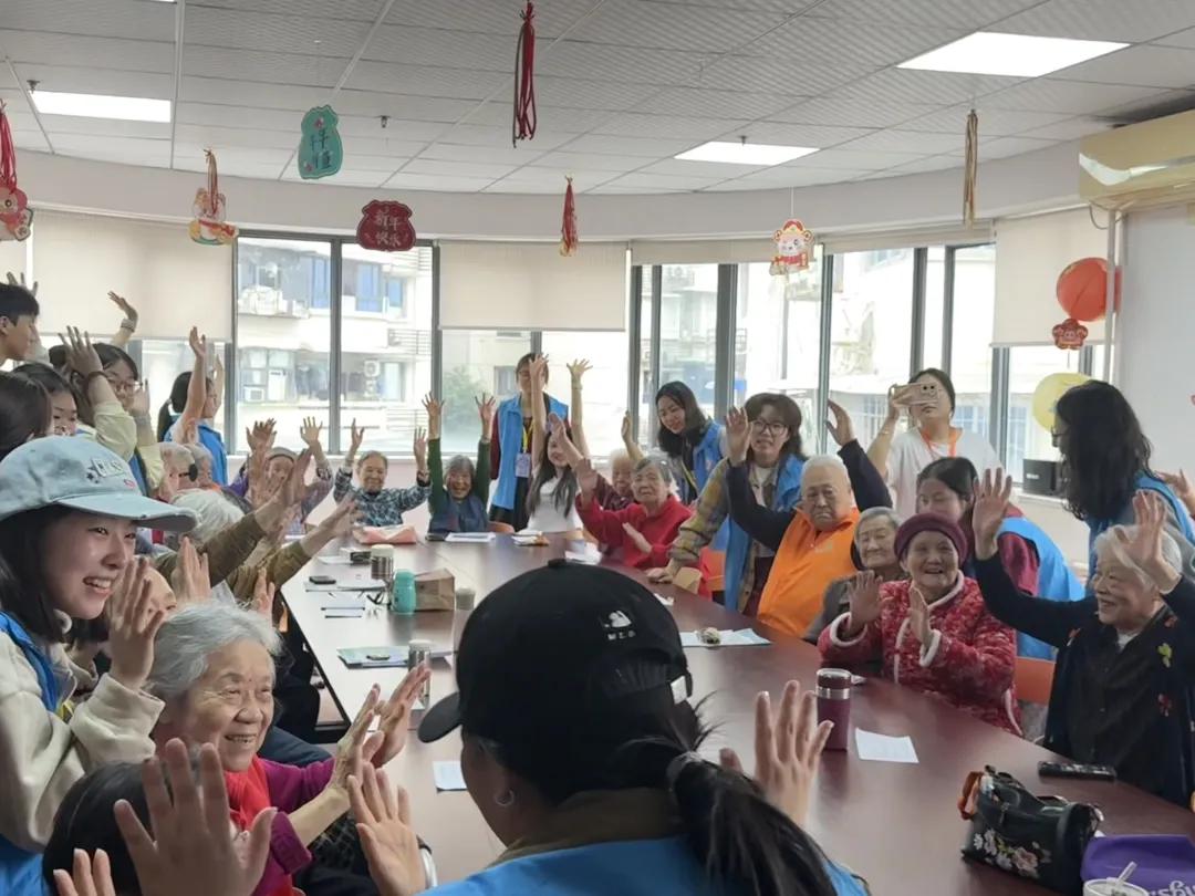 互动环节中,志愿者与老人们共同参与见字组词、趣味英语互动、四字祝福接龙、听指令做动作等趣味游戏。大家围坐一堂、默契配合,志愿者耐心陪伴、细心引导,在轻松愉快的氛围中拉近彼此距离,老人们也积极互动,与志愿者共同完成游戏,现场处处洋溢着温馨与祥和。