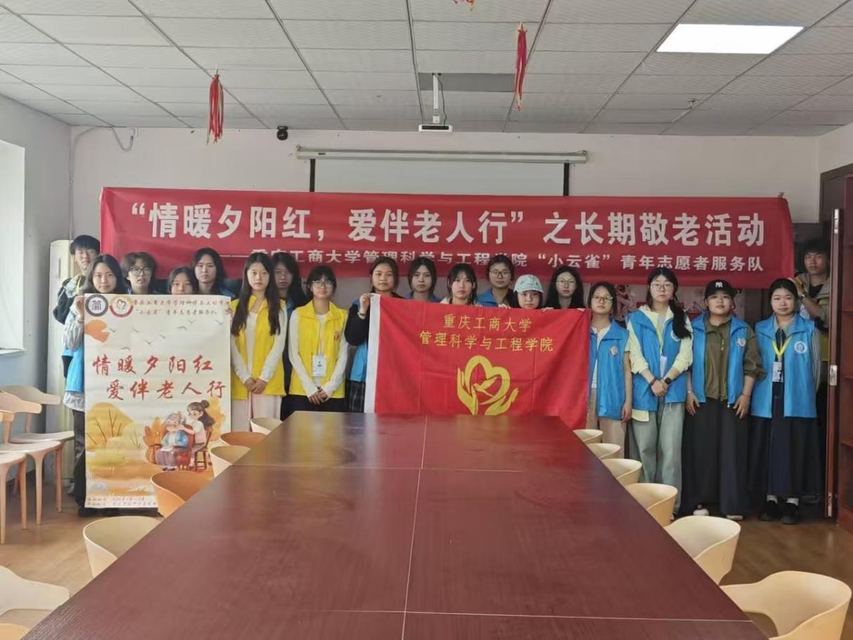 为弘扬尊老敬老传统美德,传递青年学子温暖关怀,2026年4月11日上午,重庆工商大学管理科学与工程学院“小云雀”青年志愿者服务队前往重庆市渝中区惠和养老服务中心,开展“情暖夕阳红,爱伴老人行”敬老志愿服务活动。