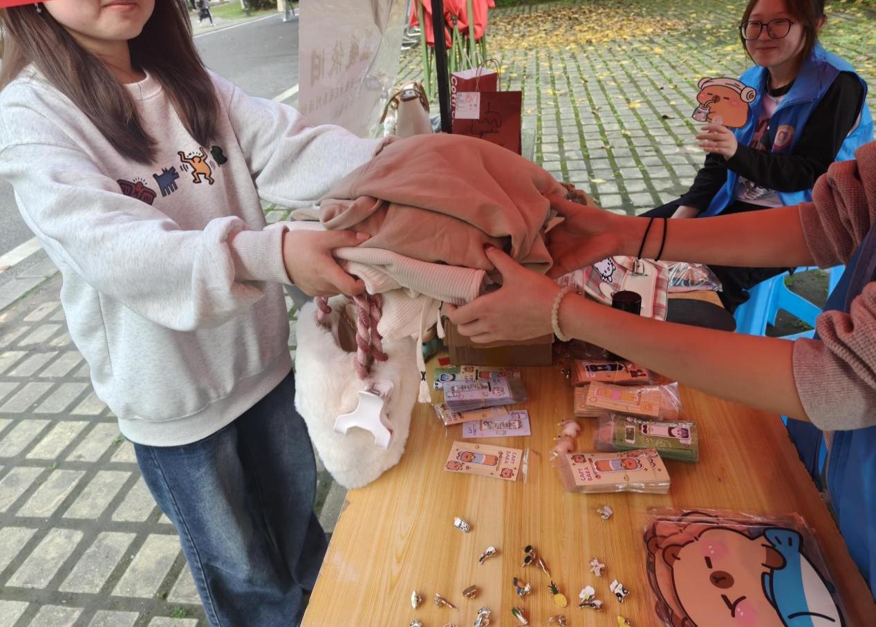 活动期间,志愿者们在博智楼前设置固定回收点,热情接待每一位捐赠者,细心对旧物进行分类、登记与整理。师生们纷纷将中闲置物品带到现场,用点滴行动支持环保公益。一件件干净整洁的衣物、一本本承载知识的书籍、一个个实用的日用品被整齐收纳,汇聚成温暖的爱心洪流。