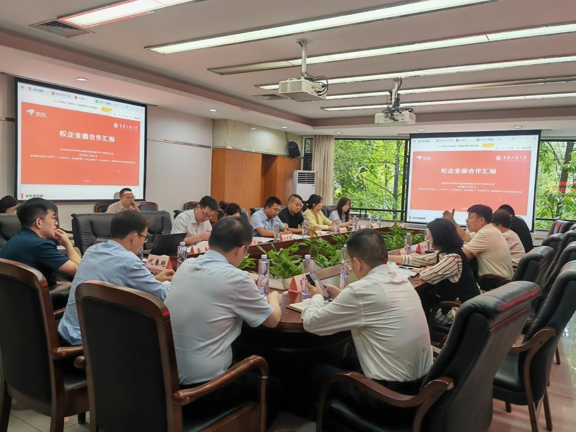2025 年 9 月 25 日上午 9 时,重庆工商大学与京东物流科技在学校厚德楼 3020 会议室隆重召开了工商-京东商工融合平台建设报告与交流会。此次会议旨在深化校企合作,推动商工领域资源整合与协同创新,为双方后续平台建设明确方向、凝聚共识。会议由重庆工商大学管理科学与工程学院院长黄钟仪主持。