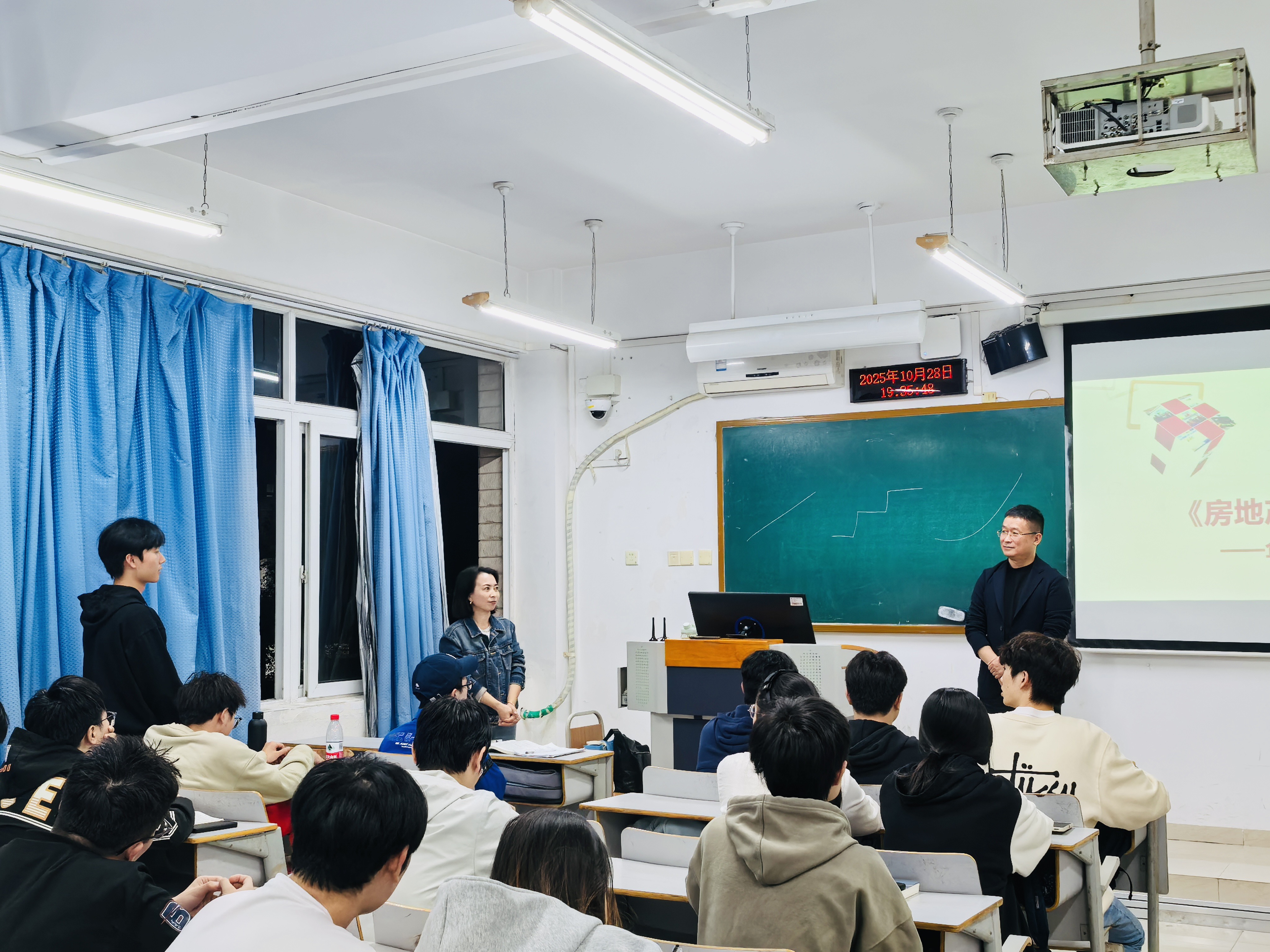 2025年10月28日晚7时,管理科学与工程学院工程管理专业肖艳教授讲授的《房地产估价》课程“企业专家进课堂活动”顺利进行。本次课程特邀重庆同诚房地产土地资产评估有限公司副总经理、估价行业专家甘光辉与经理瞿敬走进课堂,两位校外专家为师生们带来了一场精彩且富有深度的行业分享。