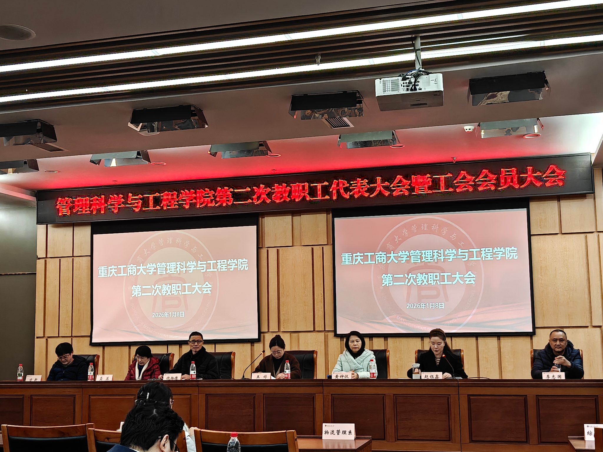 1月8日下午,管理科学与工程学院2025年度院领导班子述职测评暨学院“两代会”换届选举大会在图书馆第一会议室顺利召开。