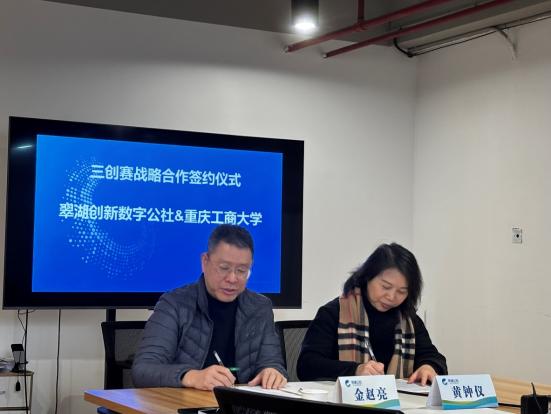 活动尾声,举行了三创赛战略合作签约仪式。黄钟仪院长代表重庆工商大学管理科学与工程学院,金赵亮副会长代表翠湖创新数字公社签署合作协议。根据协议,双方将围绕三创赛等学科竞赛开展深度合作,包括共同挖掘竞赛项目、联合指导参赛团队、提供实践场地支持等,助力学生创新创业能力提升,实现校企资源优势互补、协同发展。
