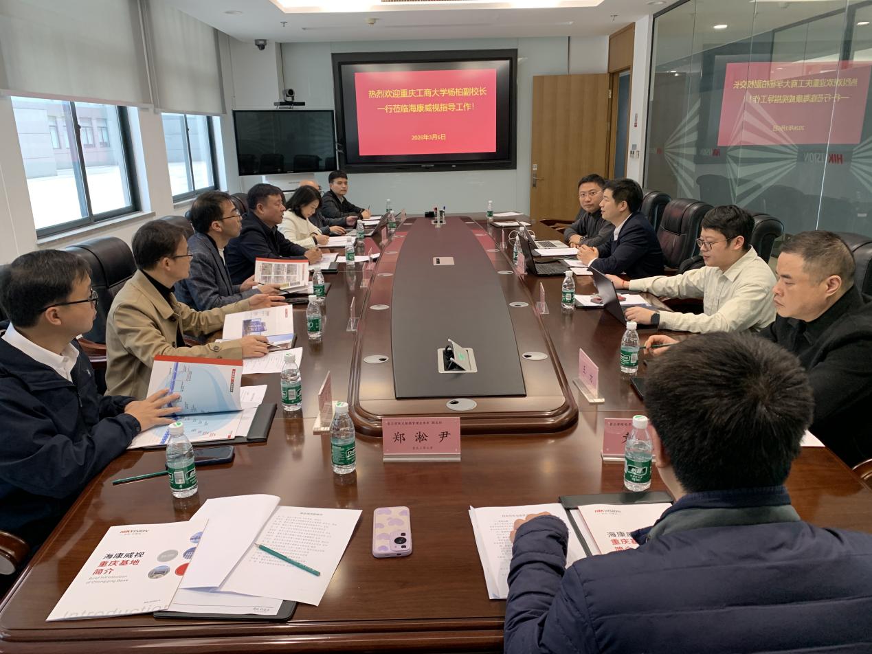 2026年3月6日,学校党委常委、副校长杨柏带队赴海康威视重庆科技园区,开展AI应用产学研合作交流与访企拓岗活动。管理科学与工程学院院长黄钟仪、经济管理实验教学中心主任庞楷、管理科学与工程学院副院长梁桂保、大数据管理与应用系主任杨家权、工程管理系主任梅中亚、大数据管理与应用系副主任郑淞尹及师生代表参加活动。海康威视重庆海视城市运营管理有限公司总经理杨齐鲁、海康威视重庆分公司高教行业总经理王泽毅,时印智能科技(北京)有限公司重庆区域总经理罗翔云,重庆供耕电子商务集团有限公司副总经理王方等企业负责人出席洽谈。