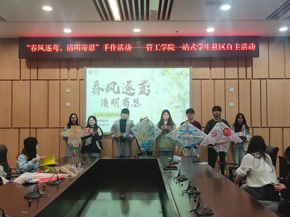 为赓续中华优秀传统文化,深切缅怀革命先烈,管理科学与工程学院星火党员服务站于3月27日下午两点在图书馆五会议室开展“春风逐鸢,清明寄思”手作活动。本次活动特邀重庆市文化和旅游研究院、重庆市非物质文化遗产保护中心科研组织部主任王美木老师莅临分享,学院党委书记王婷、党员服务站指导老师温涵出席活动,全院学生积极参与。